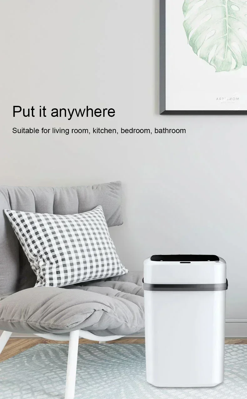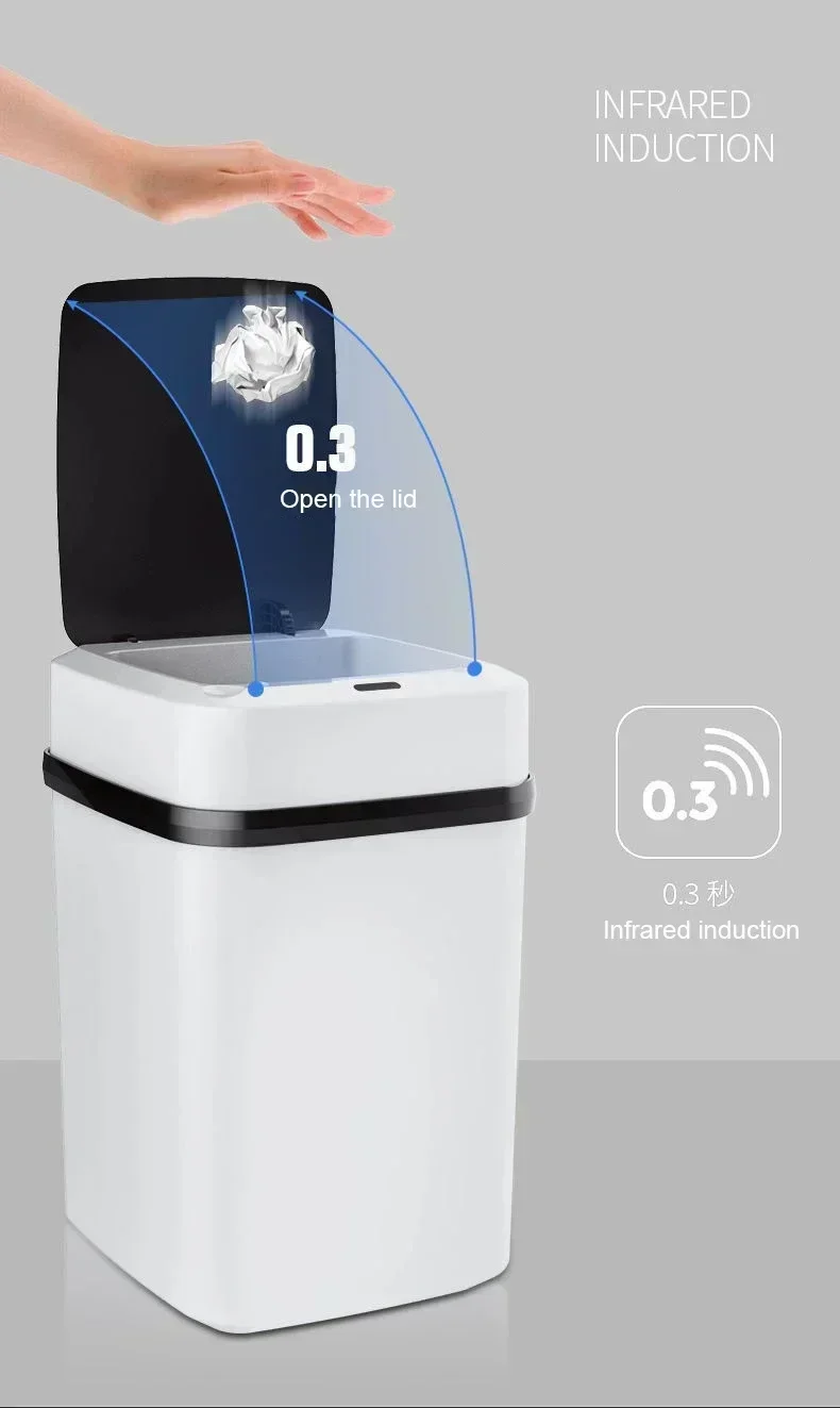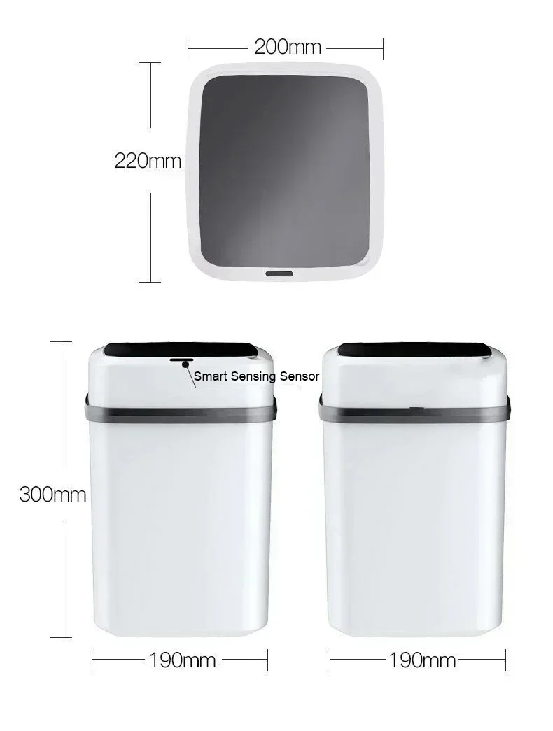 - Sensor de Indução: A tampa se abre automaticamente quando você se aproxima, facilitando o descarte de resíduos sem tocar na lata.